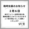 ※午後便が欠航した場合、臨時休業になります。